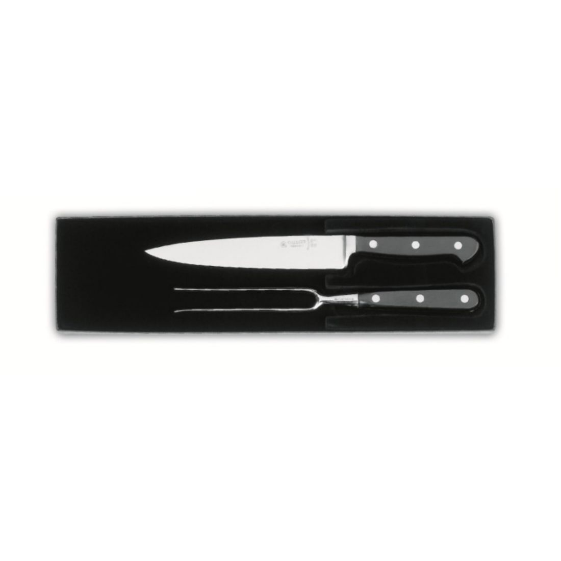Tento parádní set celokovaných nožů se hodí každému kuchaři. Profesionální vidlice i nůž mají čepel z vysoce kvalitní nerezové oceli a rukojeť z kvalitního plastu Jedná se o nepostradatelné pomocníky pro profesionální i laické servírování všech druhů masa.