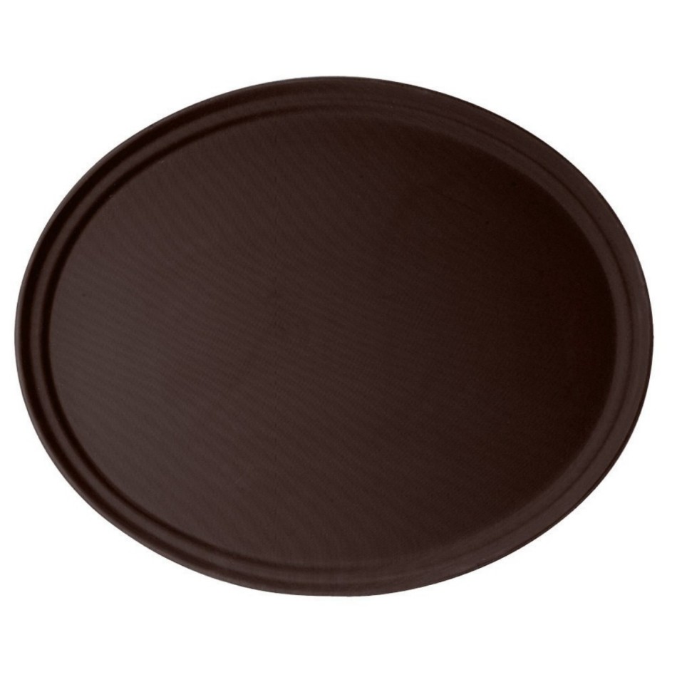 Tento oválný podnos v hnědém provedení se hodí pro cateringové společnosti, hotelové pokojové služby a bankety, kde se manipuluje s těžkým nádobím. Díky protiskluzové povrchové úpravě pomáhá podnos vašim hostům v tom, aby jim nesené jídlo neklouzalo a lépe se jim tak s plným podnosem manipulovalo. Je parádně stohovatelný, takže se dobře skladuje. Vhodný do myček na nádobí a do teploty max. 100 °C.
