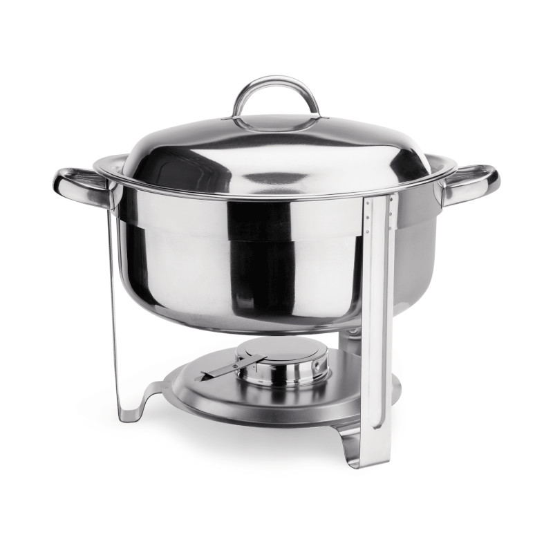 Chafing s nádrží pro hořlavou pastu určený na kulaté gastronádoby se skvěle hodí pro podávání různých polévek. Udrží je příjemně teplé.