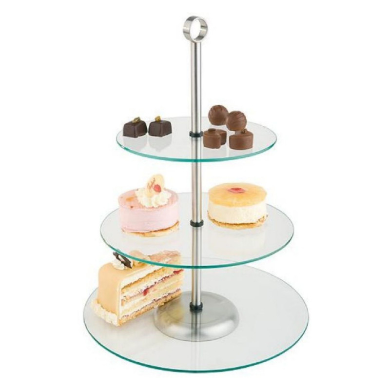 Vystavte své cukroví a zákusky na odiv na skleněném etažéru. Jeho elegantní design zdůrazní vaše cukrářské umění a stane se působivým doplňkem. Vzhledem připomíná porcelán, ale vyrábí se z melaminu, který není tak křehký a více vydrží.