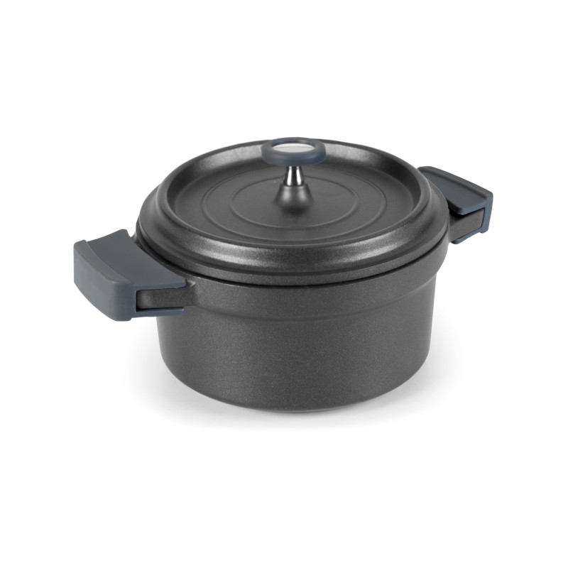 Kulatý hrnec o průměru 28 cm v černé barvě doporučujeme provozům, které pracují s vyššími objemy jídel – školním jídelnám, firemním kantýnám nebo event cateringům. Je vyroben z roztaveného hliníku, díky čemuž vyniká rovnoměrnou distribucí tepla – bez přepalování, bez ztráty tekutin. Hrnec tak zajišťuje, že potraviny zůstanou šťavnaté, s plným zachováním chutí, vitamínů i vůní. Vnitřní konstrukce poklice je navržená tak, aby kondenzační voda uvnitř nádoby kapala zpět na pokrm a neudržovala se na víku. Vaření s poklicí přispívá k pozvolnému zvlhčování pokrmů bez nutnosti dolévání vody či vývaru. Vhodný pro dušení velkých kusů masa, vaření příloh, polévek nebo zeleninových směsí.
