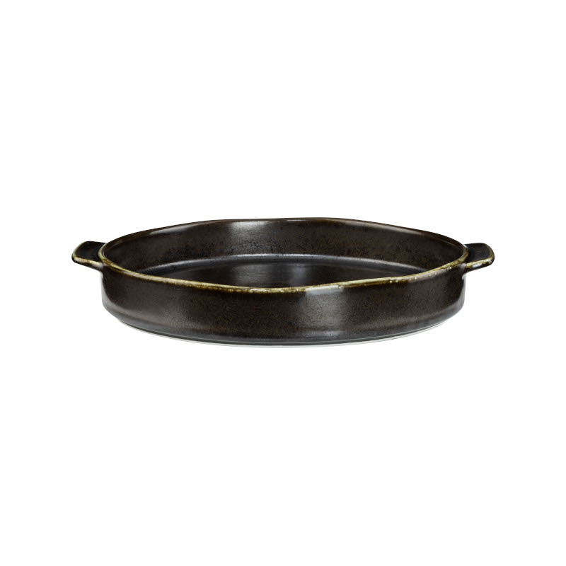 Elegantní tmavý odstín pokrytý smaltem poskytuje parádní prostor pro vyniknutí vašich podávaných specialit. 100% porcelán vytváří jedinečný design získaný během procesu vypalování při 1 380 °C. To také zaručuje železnou sílu a odolnost proti odštípnutí.