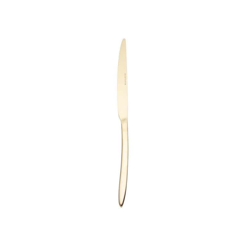 Jídelní nůž z kolekce Orca Champagne představuje elegantní a rafinovaný model, který se sám pozve k vašemu stolu. Svůj půvab ukazuje především díky barevnému provedení připomínajícímu šampaňské. Kvalitní nerezová ocel 18/10 se zase postará o dlouhotrvající účinek.