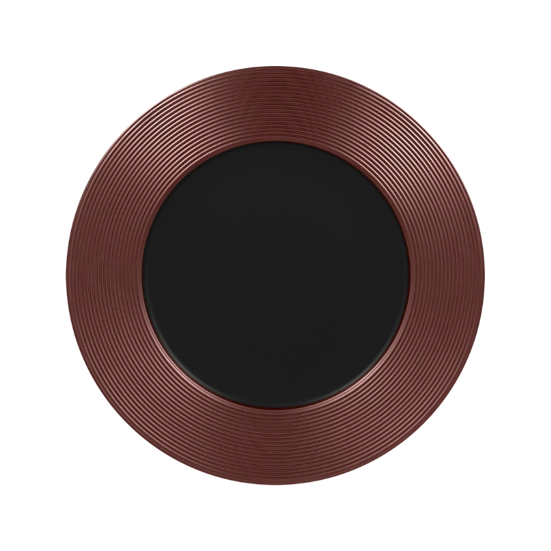 Porcelánový mělký talíř s kruhovým reliéfem v bronzovém dekoru a tajemně černým středem dodává vkusnou a elegantní atmosféru. Vaše hosty ohromí, zaujme a zpříjemní jim gastronomický zážitek. Prvotřídní porcelán zaručuje kromě svého atraktivního designu také svou odolnost a kvalitní zpracování.