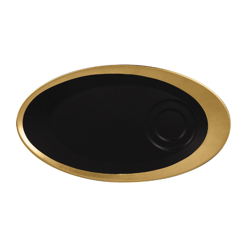 Porcelánový podšálek s kruhovým reliéfem ve zlatém dekoru a tajemně černým středem dodává vkusnou a elegantní atmosféru. Vaše hosty ohromí, zaujme a zpříjemní jim gastronomický zážitek. Prvotřídní porcelán zaručuje kromě svého atraktivního designu také svou odolnost a kvalitní zpracování.