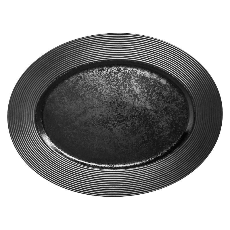 Oválná mísa v černé barvě s chromatickou glazurou nabízí kromě efektního designu také funkčnost – můžete ji mýt v myčce nádobí, vložit do mikrovlnné trouby i do lednice.