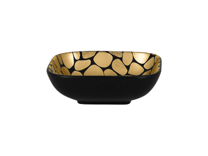 Miska s designovým dekorem vykreslujícím oblázky, které připomínají tisíce zářících sluncí. Kombinace zlatočerné dodává na luxusní atmosféře, která potěší a povznese gastronomické prožitky do slastných výšin nebes. Kvalitně zpracovaný porcelán zaručuje odolnost a dlouhodobou živostnost. Misku využijete pro podávání vašeho kulinářského umění všeho druhu.