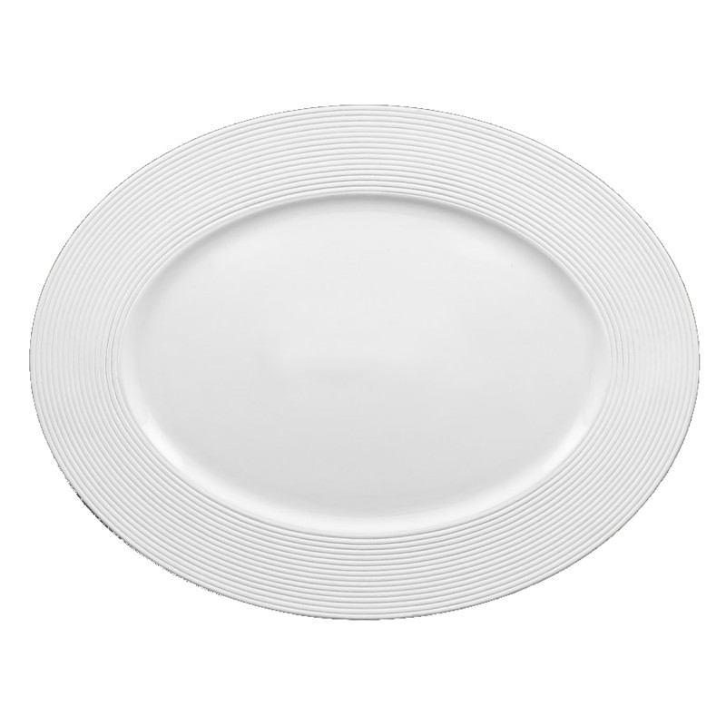 Oválný talíř z kolekce Evolution vás ohromí svým výjimečným designem, kterému dominují jemné, ale zároveň výrazné linie a zářivě bílá barva. Díky své velké ploše se perfektně hodí k podávání hlavních chodů, celých ryb nebo masa.