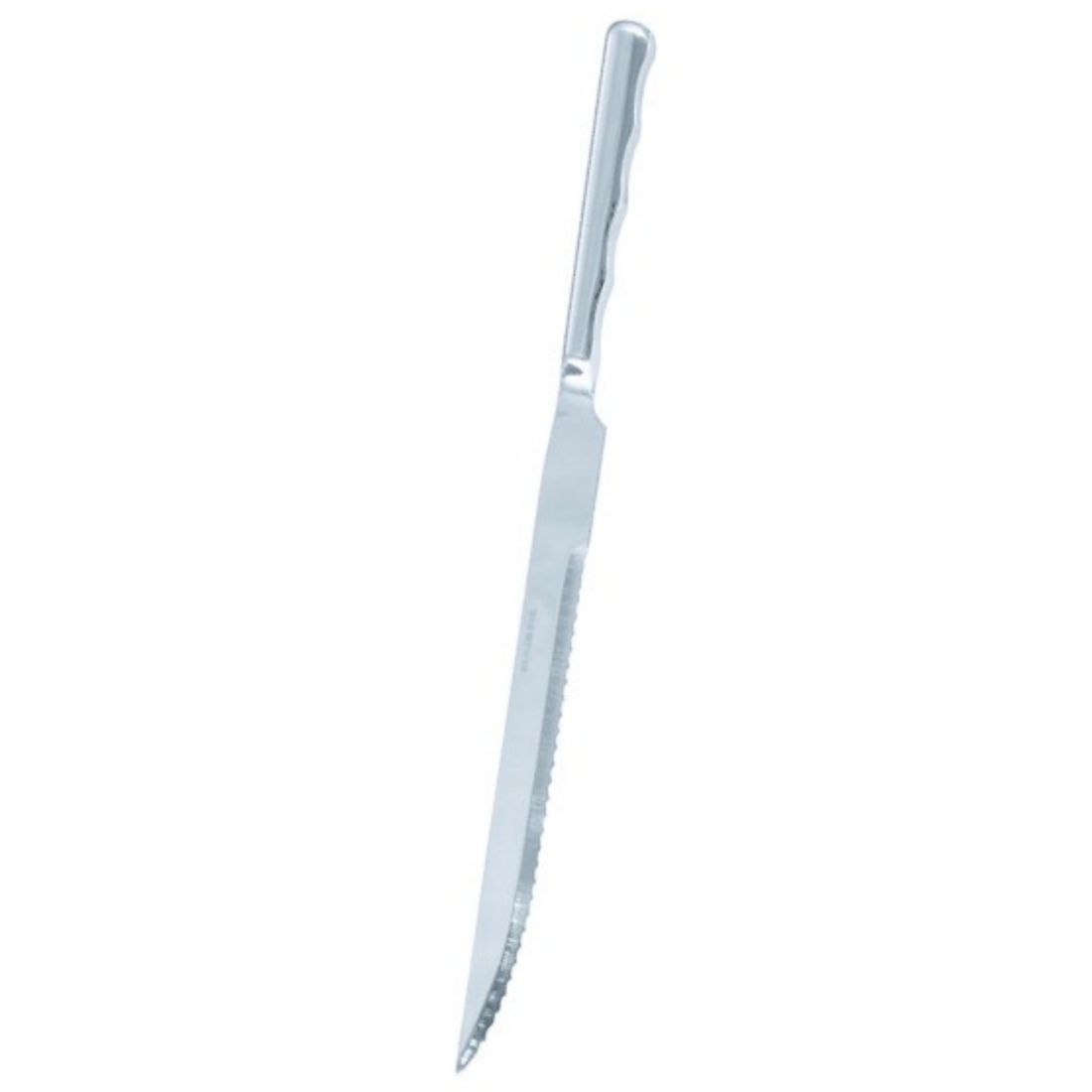 Servírovací nůž vyrobený z velmi kvalitní nerezové oceli 18/10 ve vysokém lesku představuje skvělého praktického pomocníka pro krájení různých pokrmů. Nemá žádné viditelné spoje a lze jej mýt v myčce nádobí