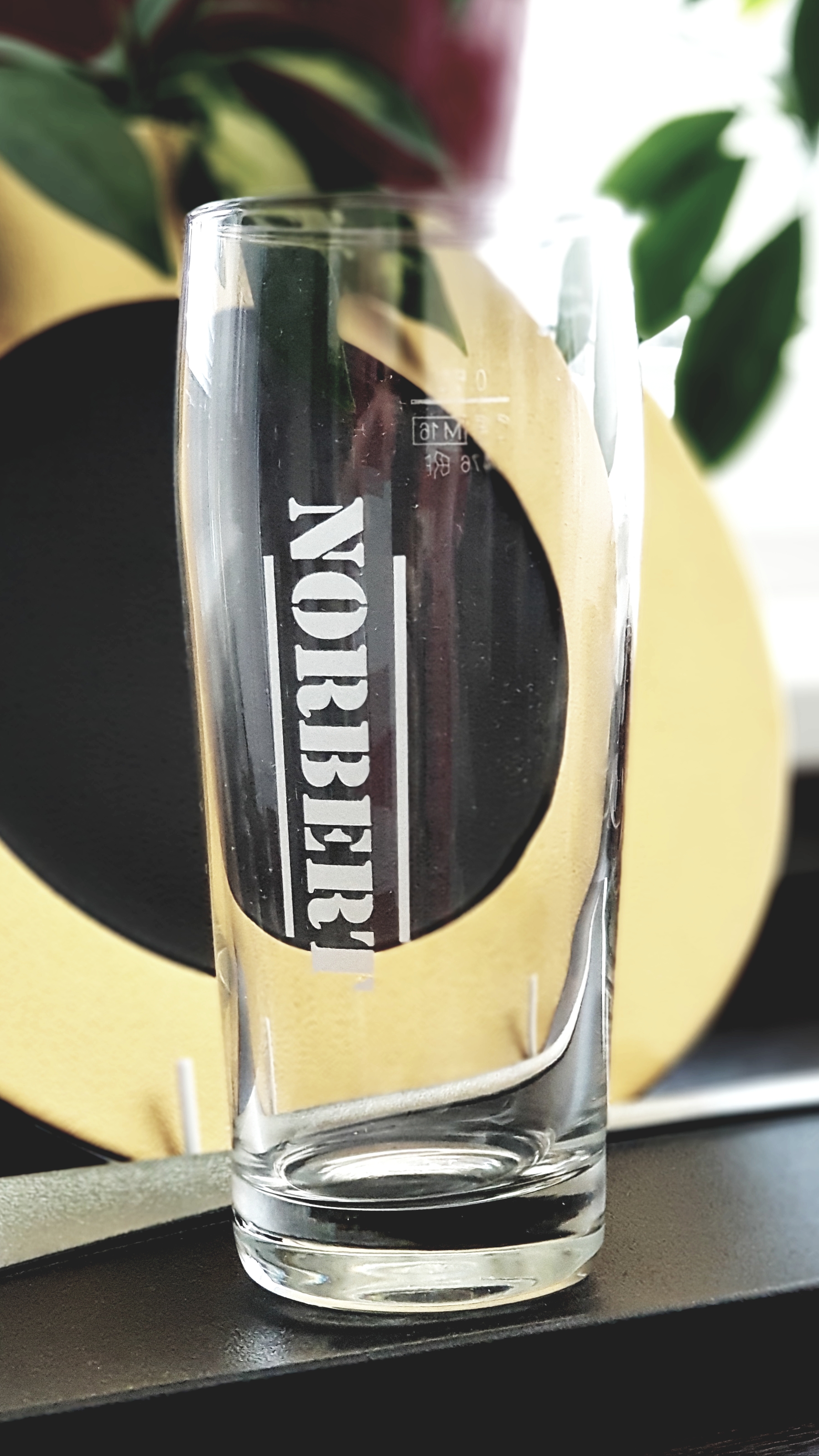 Sklenice je opatřena vygravírovaným jménem NORBERT.