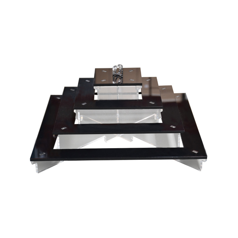 Pultový stojan v podobě 4patrové tribuny skvěle zvýrazní vaše fingerfood občerstvení. Elegantní černá barva dodává pocit luxusu. Vyrábí se z akrylu a jednoduše se čistí.