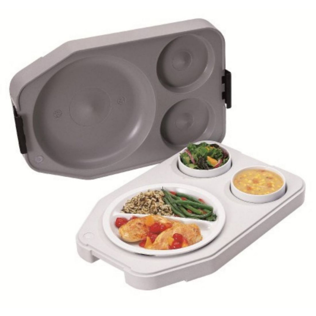 Tabletový systém je ideální pro stravování ve zdravotnických zařízeních, hotelovou pokojovou službu a donášku domů. Udrží jídlo teplé až po dobu 1 hodiny. V setu najdete talíř s poklopem a dvě izolované misky s víčkem. Vytvarované důlky zabezpečují pokličky a napomáhají udržet teplotu pokrmů. K vydezinfikování ho pak stačí jen dát do myčky. Stohovatelné pro snadnou přepravu a skladování.