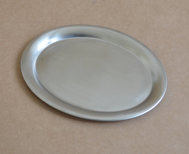 Nerezový tácek oválný na servírování kávy a čaje. Rozměr 203x145 mm . Materiál: nerez 18/10.