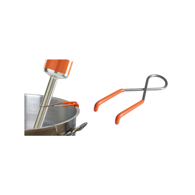 Úchyt na hrnec pomáhá při práci s ručním mixérem. Lze jím připevnit mixér k hrnci a uvolnit tak ruce. Rukojeti jsou navíc potažené protiskluzovým materiálem.